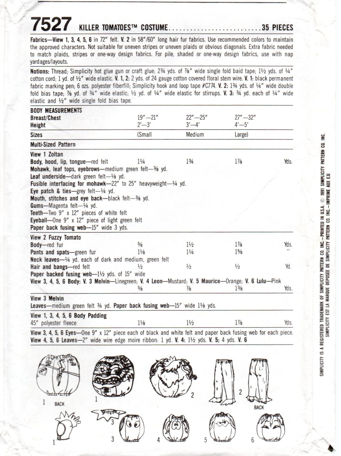 Simplicity 7527 Attack Of Killer Tomatoes Costume Pattern Etsy